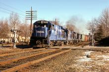 Previous Next Photo By Rich Bowes CR 1939 GE B23-7 WITH TRAIN BOEL ON BOSTON LINE CHERRY ST XING ASHLAND MA Year 1980 Original Date 2/1/80 Location Ashland MA Equipment Type EMD SD40-2 Conrail Number 1939 Additional Galleries Rich Bowes' Conrail Photographs Line or Locale Conrail's Boston Line Collection CRHS Conrail Photo Archive Contributions