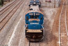 Conrail B23-7 1948 is seen at the east end of DeWitt Yard at Minoa, NY