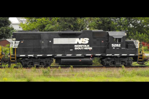 Eleven units, led by B23-7 1953, are on WB empty hopper train UMP-61 as they pass GP38-2 8157 on a light engine move on Amtrak's Northeast Corridor.
