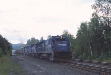 With the "momentary" disappearance of the C30-7A's from the Boston Line in 1992, lash-ups almost began to take on the appearance of the early '80's with large and varied groups of locomotives. B23-7 1965 leads a mish-mash with RESE at Ballou's in washington, MA. on Aug. 29, 1992.
