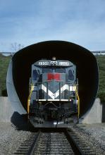 The photographer got invited up for a cab ride through the loader at the Bailey Mine complex on the Monongahela Railway, and was able to jump off for this quick shot of Super 7 2308 passing through the "mini tunnel" on the loop. Neat units, they started life as U23B's on the Western Pacific. MGA 2308 would become Conrail 2038 and then NS 4098.