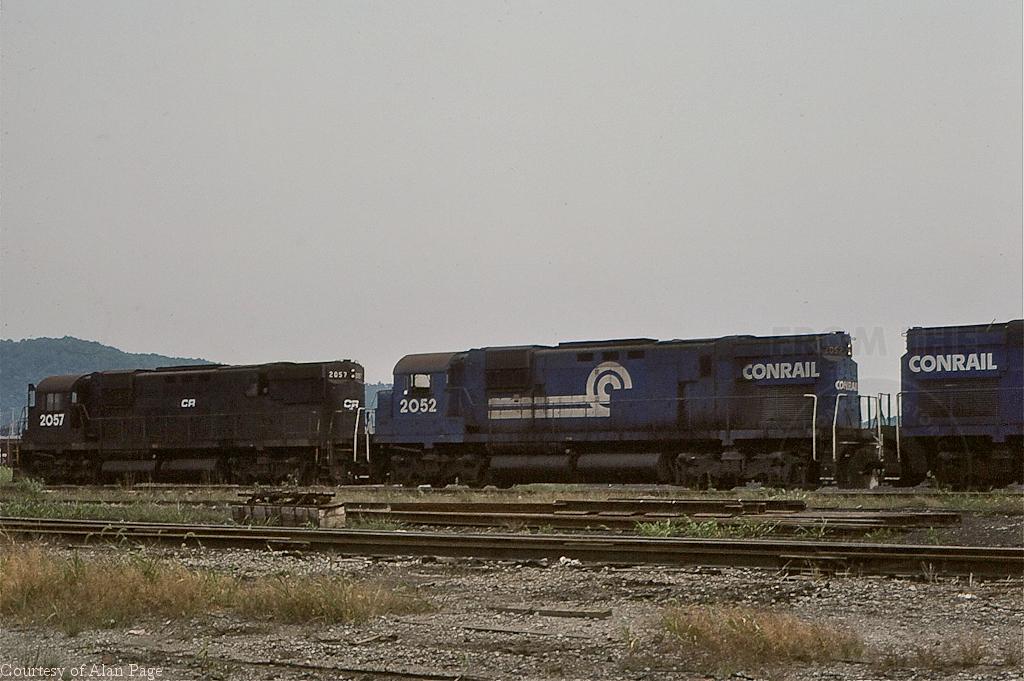 Late in the day at Mingo Junction in August, 1977, a trio of ex-NYC C430's waits for assignment.