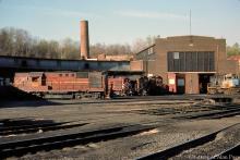 Alcos were common at Bethlehem in the spring of 1977. This day in April has CR Alco RS-11s 7642, 7641 and C420 2073, along with 2 SW-8Ms, at the roundhouse.