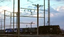 PC RSD-12 6876 moves a trio of cabooses including PC 21669 (N7 class), CR 21138 (N7D class, ex-EL C338), and a third CR caboose at Morrisville yard in March, 1977. CR 21138 was preserved by West Shore Rail Excursions, Delta Place Station, Rt 15, 2 miles north in Lewisburg, PA.