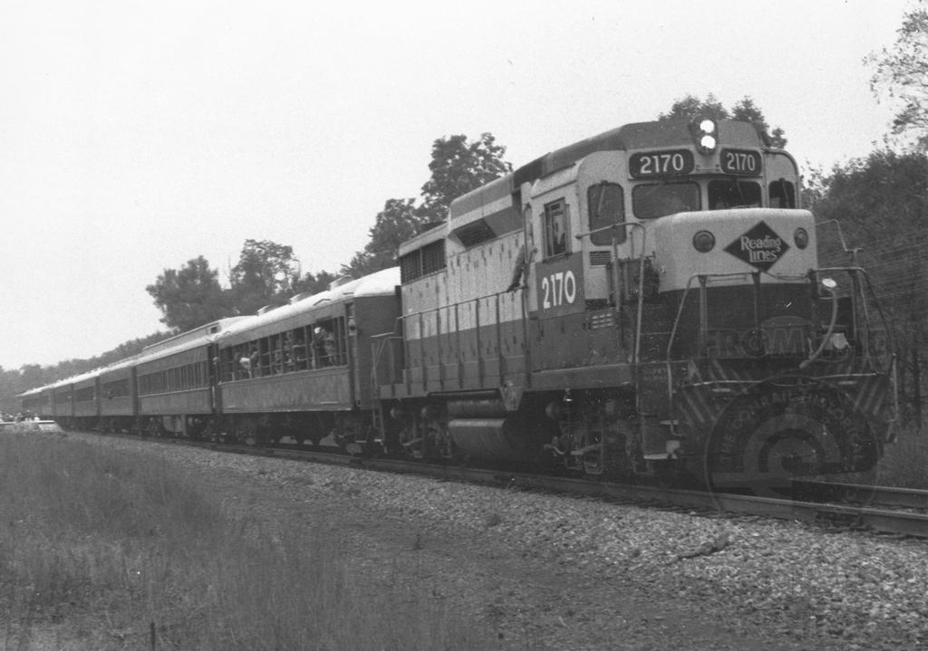 Still RDG paint, CR 2170 is seen leading a excursion trip at a unknown location in the early 1980s.