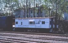 CR 21736, the "New England Div. white safety caboose" at Palmer, MA. on May 7, 1981. The only time I caught this thing at rest anywhere, and the sun angle HAD to be terrible! And a high-contrast subject, to boot! Slogan on the rear roof overhang reads "This is the end? No, the beginning".