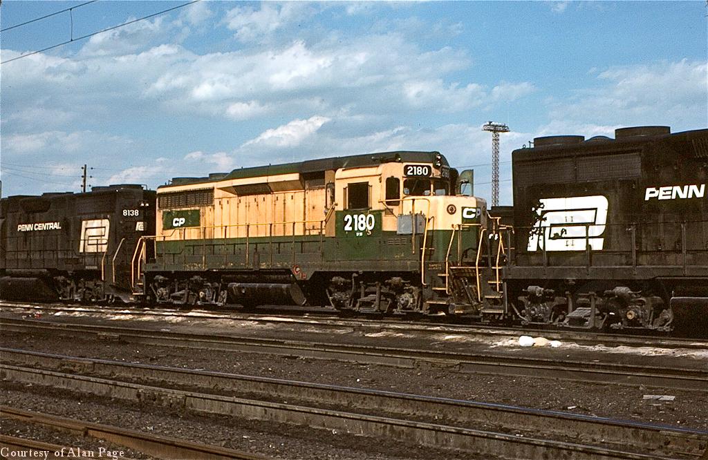 Former RDG 3612 GP-30, now CR 2180, sits coupled between 2 ex-PC running mates in the power lineup at Enola. GP-38-2 8138 sports some worn PC black.