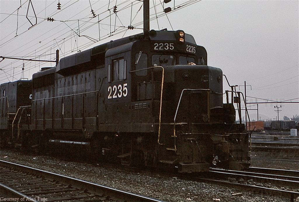 CR GP-30 2235 works with a GP-9B in Morrisville yard in March, 1979.