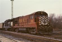 LV U23B 512 (CR 2788) and PC GP-30 2238 team up at Abrams yard in February, 1977.