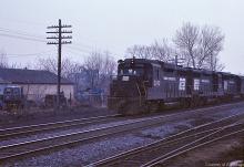 A trio of former PC units led by GP-30 2242 blasts through Abrams yard in February, 1977.