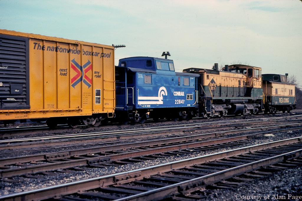 RDG SW1500 2770 (CR 9620) works Abrams yard sandwiched between ex-PC N5B 22841 and RDG N4 92887 (CR 18752) cabooses.