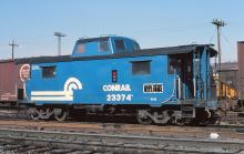 CR 23774 is seen at Conway, PA on 3/7/77.Caboose is ex PC 23374/PC 4705/PRR 478031and was built 4-51.