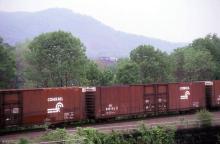 Previous Next Conrail class BE83A boxcar 237172 is seen heading eastbound at Marysville, PA in 1992. Car is ex EL 92139. Photo By Dick Bregler Location City Marysville PA Equipment Type Class BE83A Conrail Number 237172 Collection CRHS Conrail Photo Archive Contributions