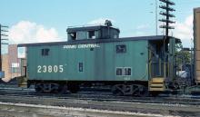 Before she was painted blue, Akron, Ohio August, 1976. CR/PC class NE6 cabin car.