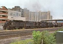 An Alco lover's dream pounded through Altoona in July, 1978! Former PC SD-35 6003 leads ex-LV C628 6728 with "Snowbird" paint beginning to show through. Following third and fourth are ex-PC C425's 2423 and 2418.