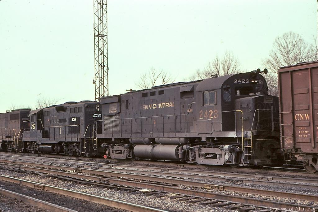 CR C425 2423 is at the tail end of a quartet of mixed CR power rumbling through Abrams yard in early February 1977.