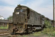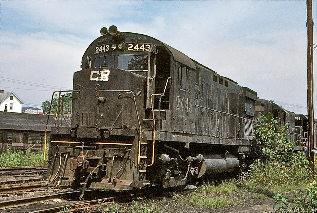 Conway-based former PC C425 2443 rests at Youngwood, PA in August, 1978.