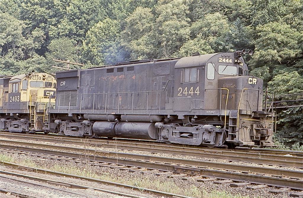 Ex-PC C425 2444 leads a quartet of three ALCos and one GP-9 in Weirton, WV in August, 1978.