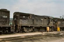Former PC C425 2451 lined up with GP38 7727 "F.O.B." at Pitcairn, PA in August, 1978.
