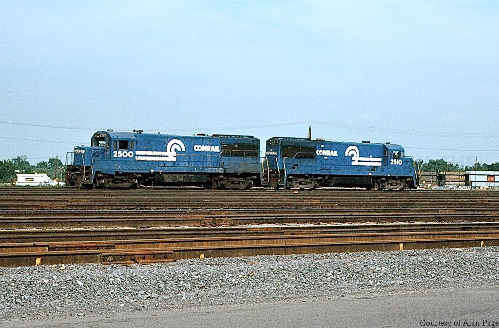 CR U25B's 2500 and 2510 roll light through Selkirk yard in August, 1979.