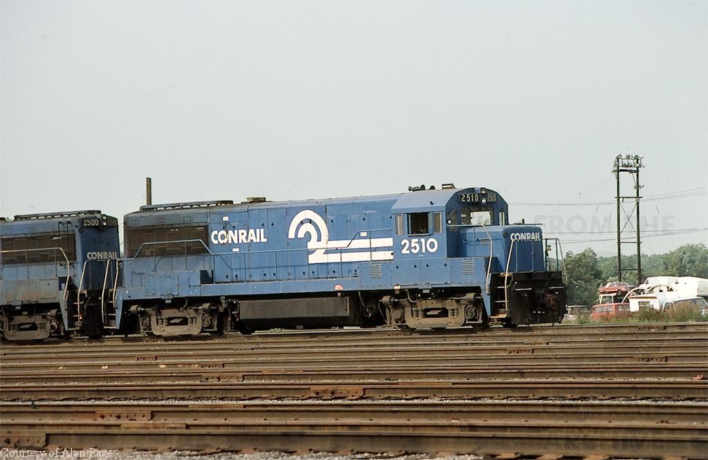 CR U25B's 2500 and 2510 roll light through Selkirk yard in August, 1979.