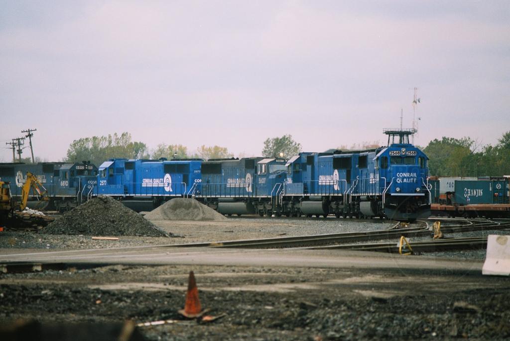 Conrail power that includes some new SD70's like the 2568 facing the photographer is seen at the former Erie Lackawanna 51st Street Yard in Chicago, IL in November 1998. Other units that can be identified in the shot includes CR 6810(SD50), 2577(SD70), 5607(SD60I), and 2560(SD70). Doug Davidson photo with permission