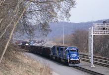 UBT-406 departs Shire Oaks yard, heading to the coal fields to load.