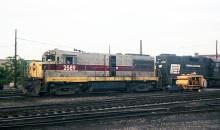 An ex EL U25-B prepares to depart the yard at Rochester.