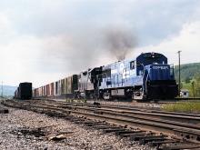 An Eastbound departs Hornell at ZY - the East end of the old Hornell Yard.