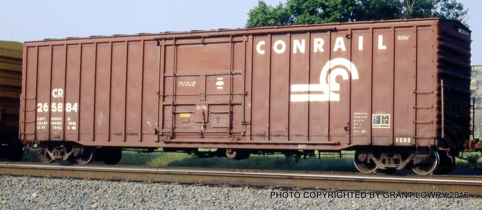 Previous Next CR 265884 is seen at Marysville, PA in 1990/91. Car is ex PC 265884/PRR and was built 1-66. It was deleted on 10/1/2001. Photo By Grant Lowry Equipment Type Class X58B (PRR Cars) Conrail Number 265884 Collection CRHS Conrail Photo Archive Contributions