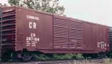 Previous Next Photo By Bob Wilkus Car is ex EL 66748/ERIE 66748was painted MDV 5-76. (Color is off due to original slide being red-shifted) Year 1976 Original Date 6/20/76 Equipment Type Class BE52B Conrail Number 267164 Collection CRHS Conrail Photo Archive Contributions