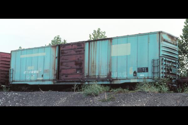 CR 275392 is seen, still in PC green, in storage at Hollidaysburg, PA on 8/14/98. Car is ex PC 275392.