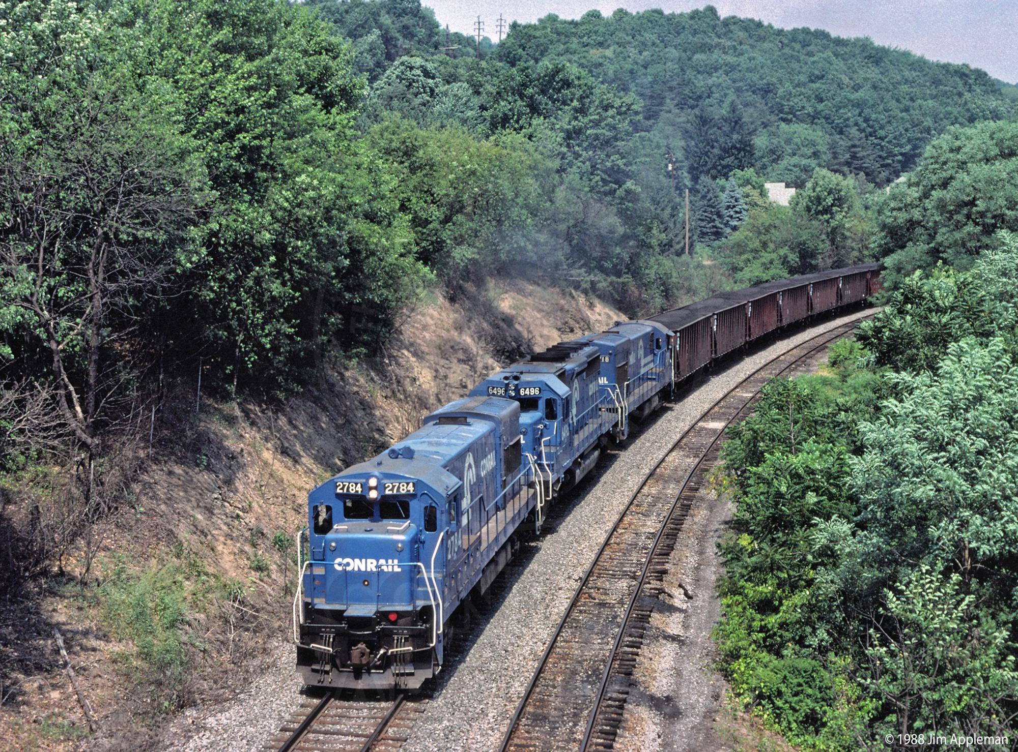 CR 2784, ex-Lehigh Valley 508, leads this loaded UMB coal train north to New York state. Within 3 months the last through trains would travel between Williamsport, PA and Corning, NY on this line.