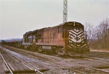 Not typical yard workers, LV U23B 512 (CR 2788) leads PC GP-30 2238 as they shuffle gondolas and boxcars at Abrams.