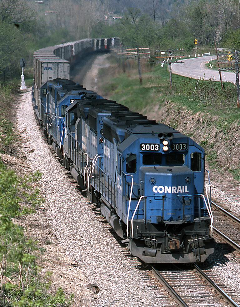 The Carson bridge just East of Canisteo makes a nice vantage point for CR stack train TV-302. It was nice to see that older GP40 on the point. Because of the ex EL right of way being engineered to accomodate larger loads, the Southern Tier initially was the route that all stack trains used in NY. Once CR finished its clearance improvement project on the old NYC main, these trains were moved to that routing.