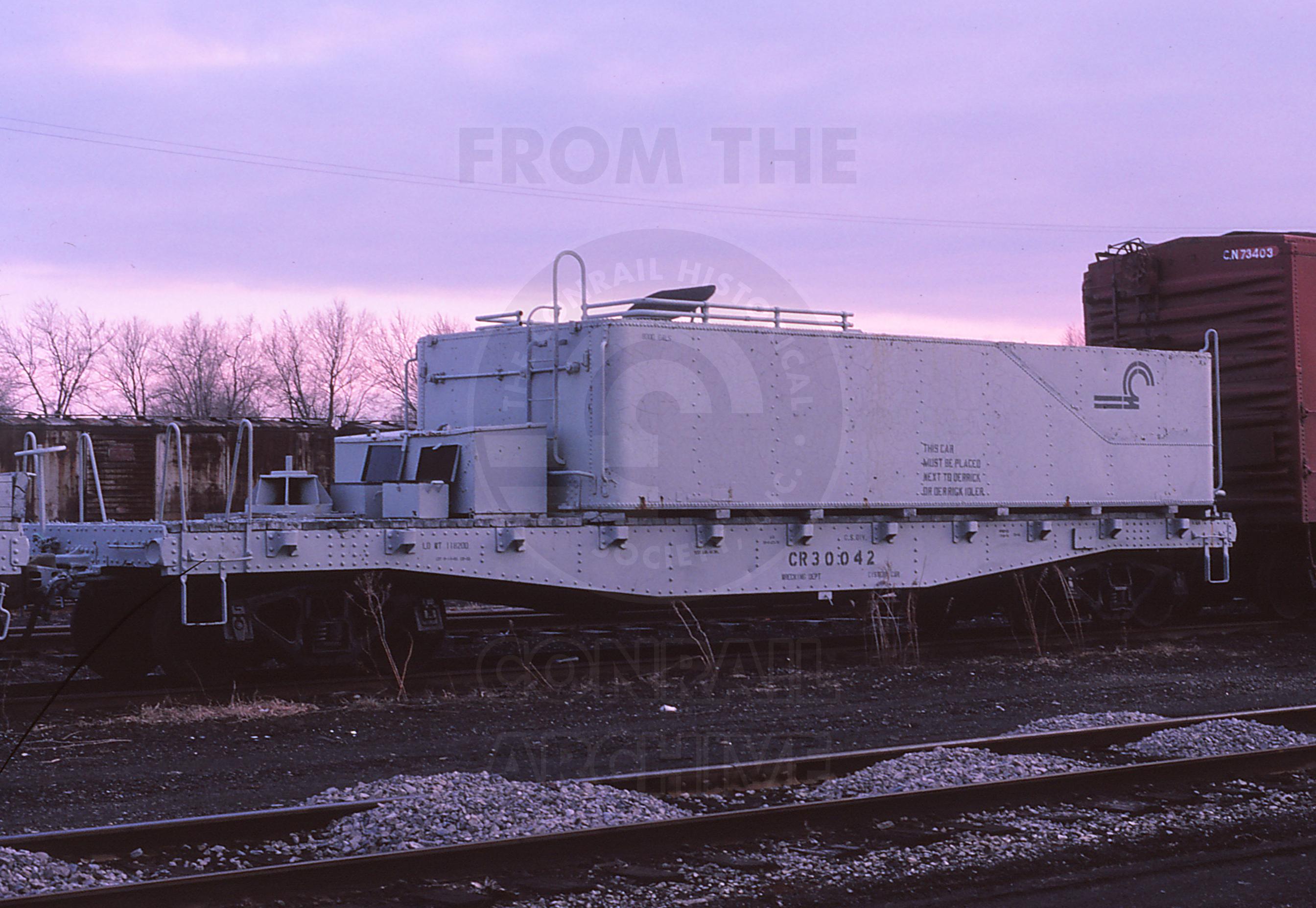 CR 30042 is seen at St. Thomas, ON in April of 1987. The heritage of this car is currently unknown.