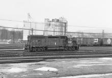 Another "white-lined" ex CR GP40, the 3258 sits in East Deerfield yard on Feb. 18, 1984.