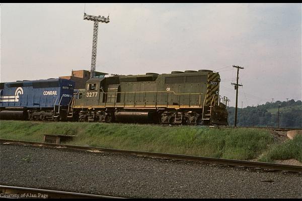A trio of 40's rolls a TV train north on the River Line, passing the Haverstraw station, now a private business.