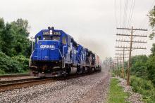 Previous Next Photo By Rich Bowes CR 3305 EMD GP40-2 CHICAGO LINE ANGOLA NY WITH TV TRAIN Year 1990 Original Date 7/1/90 Location Angola NY Equipment Type EMD GP40-2 Conrail Number 3305 Additional Galleries Rich Bowes' Conrail Photographs Line or Locale Conrail's Chicago Line Collection CRHS Conrail Photo Archive Contributions