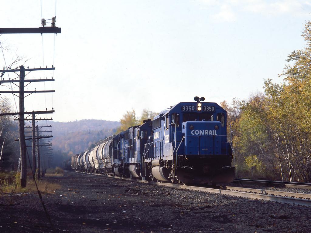 Six miles further up the hill and 22 minutes later, BOEL works his way through Ballou's and MP 135 at 08:36. The open ground along the track on this side is the roadbed of the former "Ballou's" siding, listed in ETT #126 (4/29/1934) as having a capacity of 19 cars.