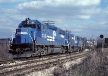 Westbound on the former EL in Akron passing the e/b 613-2 searchlight signal.
