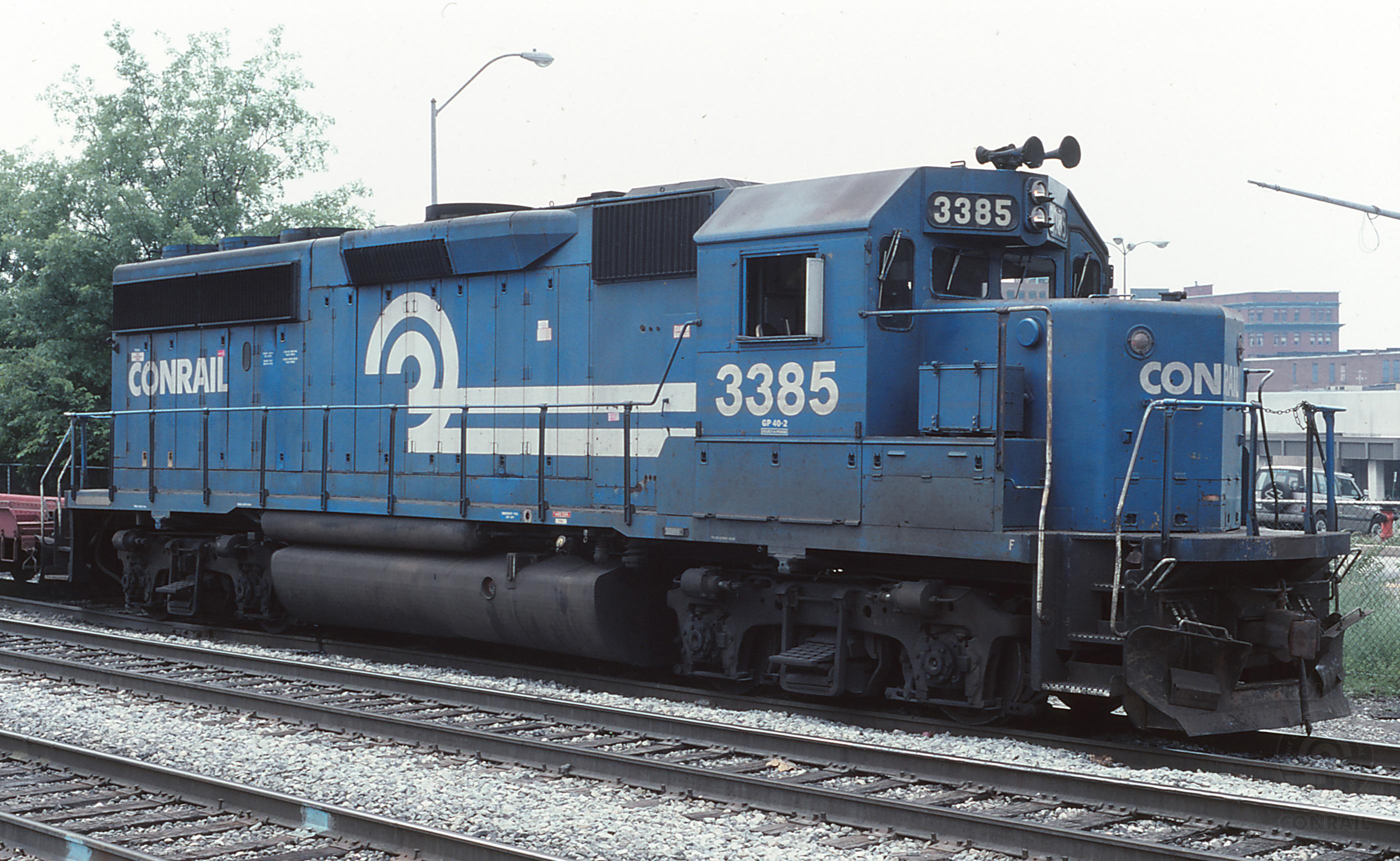 CR 3385 is seen on CSX W035 at Cumberland, MD on 6/29/96.