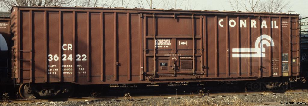 Previous Next Conrail 362422 is seen at Lemoyne, PA in the late 1970s.. Car is ex PRR 118303. Photo By Grant Lowry Equipment Type Class X58 (PRR Cars) Conrail Number 362422 Collection CRHS Conrail Photo Archive Contributions