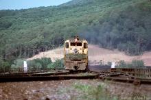 Former RDG GP-35 3625 leads GP-38-2 8114 as they pull across Rockville Bridge in June, 1977.