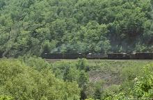 CR SD45 6155 leads SD40 6335, ex-EL GP35 2556 (CR 3662), U25B 2620, and GP38 7661 (ex-PRSL 2001) as they pull hard up Horseshoe Curve on May 22, 1977.