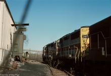 EL GP-35 2575 (CR 3681) leads sister-unit 3691 (ex-EL 2585) and a PC U-boat with a mixed freight through Bethlehem on April 9, 1977.