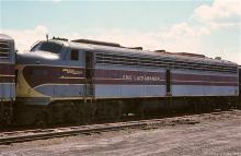 Former EL E-8A 820 (CR 4010) rests retired behind sister E-8A 829 at the Juniata shops deadline in August, 1977.