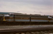 Former EL E-8A 829 rests in the Juniata shops deadline in August, 1977.