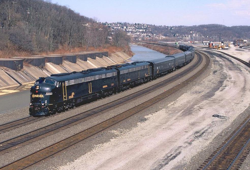 Conrail's classy OCS makes an appearance on the Pittsburgh Line, shown here running alongside Turtle Creek.