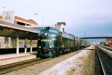 Conrail OCS Train at the Altoona Station behind E8As Nos. 4021 and 4020, on October 1, 1994. Doug Davidson photo with permission